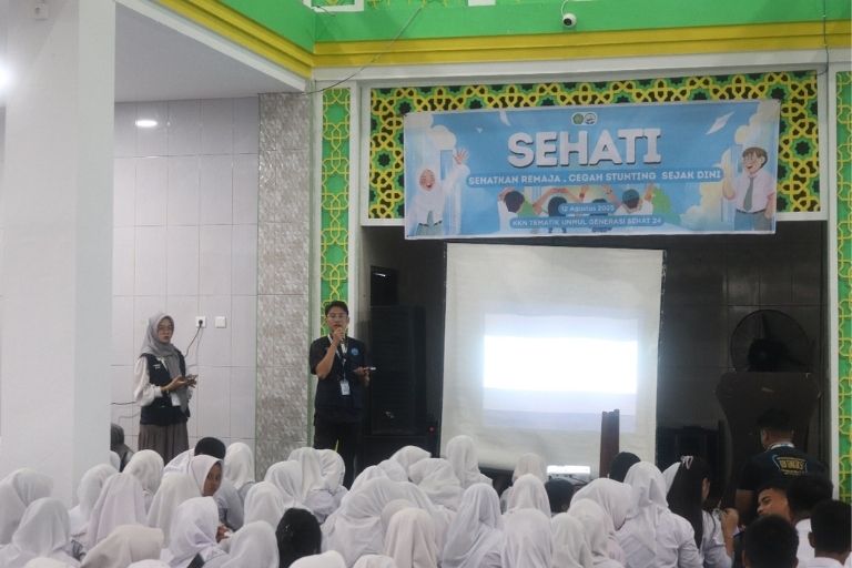 Acara yang diikuti oleh ratusan siswa kelas 10 ini menyajikan materi mengenai definisi, penyebab, dan dampak stunting, serta peran remaja dalam pencegahan stunting yang dapat dimulai sejak remaja. Tim KKN juga memberikan penekanan pada pentingnya asupan gizi seimbang, kebiasaan hidup bersih sehat, pentingnya konsumsi zat besi (Fe) secara rutin, manajemen uang saku, dan cara pengecekkan status gizi (IMT) dengan menggunakan kalkulator BMI yang dapat diakses pada website terpercaya seperti Kementerian Kesehatan.